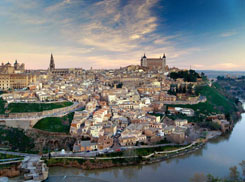 En Toledo haremos una Panorámica de la Ciudad, pararemos en los Cigarrales, desde donde hay una de las vistas más impresionantes del Mundo, como es la de la ciudad rodeada por el Río Tajo, junto al Alcazar y la Catedral.
